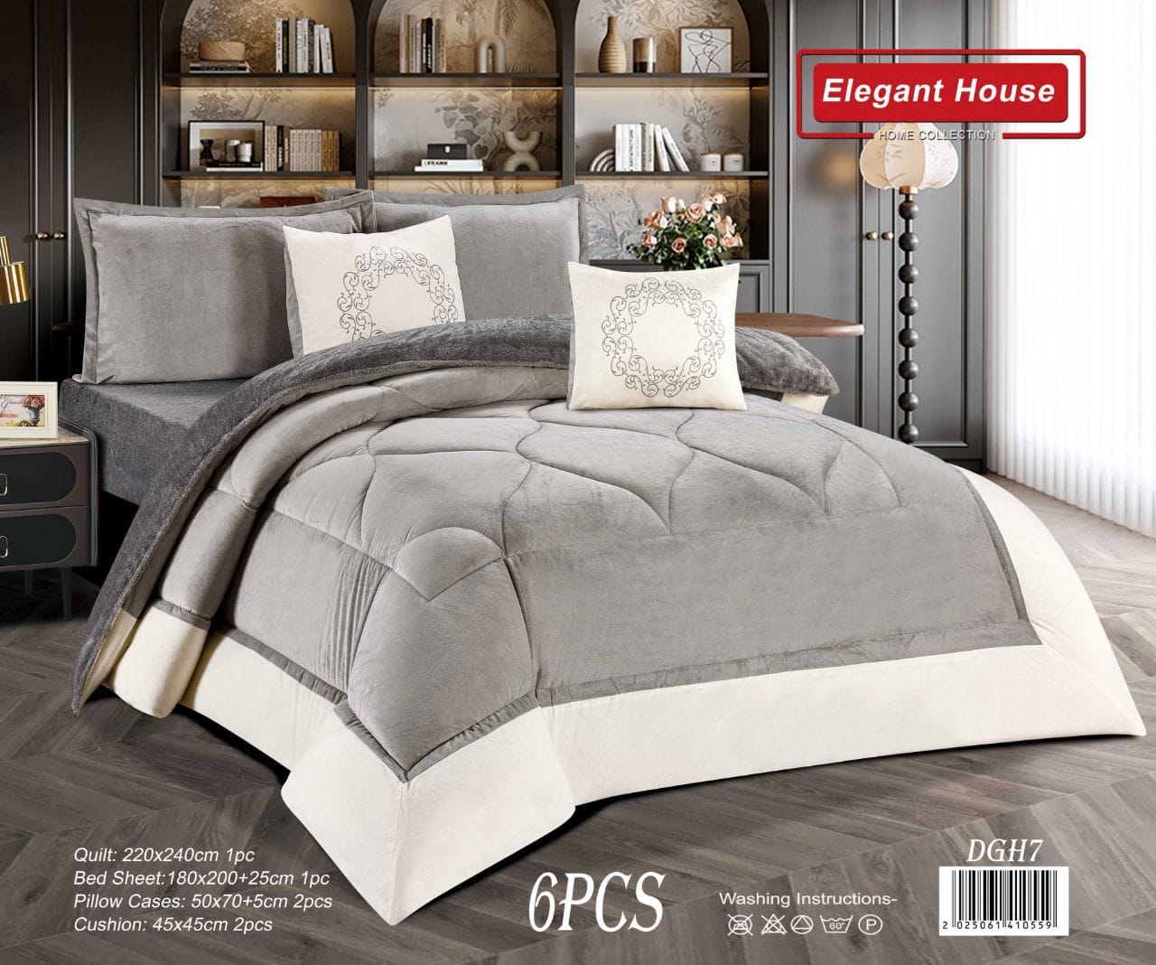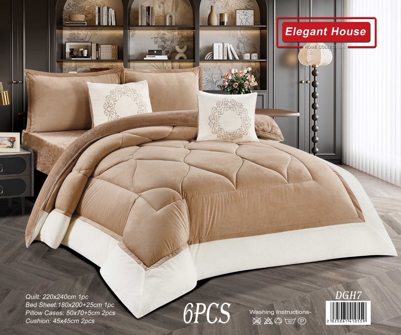 نقدم لك طقم اللحاف المكون من 6 قطع من Elegant House، الحل الأمثل لتحويل غرفة نومك إلى ملاذ هادئ ومريح!