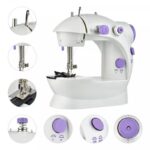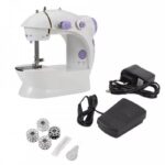 ماكينة خياطة للإستخدام المنزلي الخفيف و لا تعمل علي الأقمشة الثقيلة حجم صغير – تحتوي علي خيط مزدوج يعطي سرعة مضاعفة تعمل عن طريق اليد أو القدم سرعتان مختلفتان تعمل على تيار 6 فولت يأتي معها دواسة للقدم ومحول طاقة و كيس و إضاءة مدمجة بها لرؤية أوضح و 4 بكرات معدنية و إبرة – الأبعاد ( 18 سم طول * 19 سم عرض (