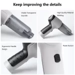 2 、 【قوة شفط قوية】 مكنسة كهربائية للسيارة لديها قوة شفط قوية ، تحتاج فقط إلى الضغط على لوحة مفاتيح الشفط lightly ، فإنه يمكن بسهولة إزالة الأوساخ griوجعل سيارتك نظيفة جدا