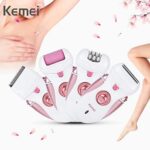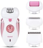 ماكينة حلاقة للنساء KM-2530 من كيمي 4 في 1 قابلة لاعادة الشحن، ماكينة حلاقة كهربائية للنساء، ماكينة حلاقة شعر للنساء لازالة شعر الجسم مع اداة للعناية بالقدمين، لون زهري